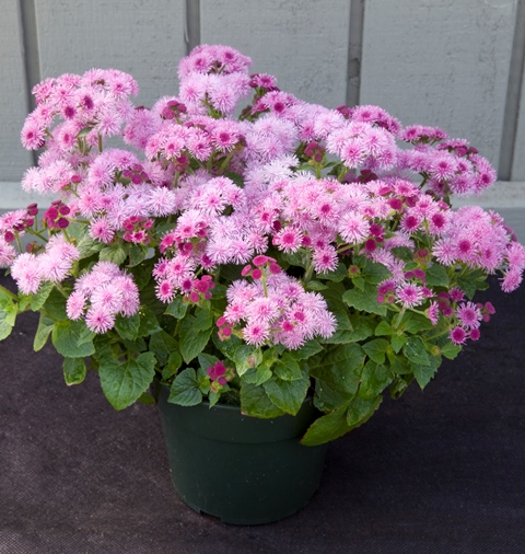Цветение наступает рано, уже в начале июля, и продолжается на протяжении 3 месяцев. К самым распространенным сортам данной серии относят Агератум Клауд Найн Пинк, который имеет компактную форму и яркие розовые цветки. Цветет обильно и долго. Используют его при создании альпийских горок или как бордюрное растение.