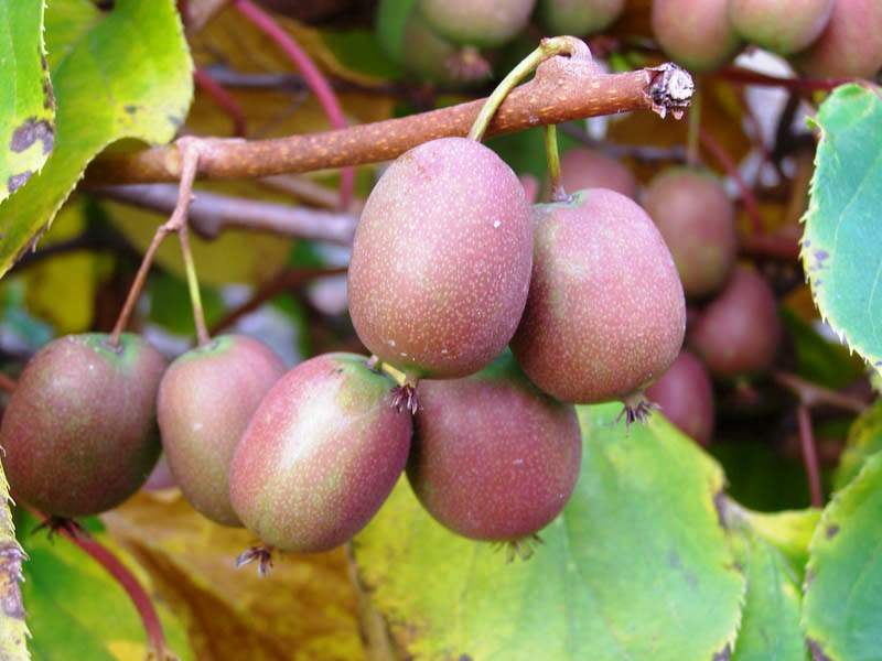 Актинидия аргута Ken's Red- красноплодный сорт аргута. Пригоден для посадки на производственных площадях. Крупные вкусные плоды со съедобной кожурой. Время созревания сентябрь-октябрь, в плодоношение вступает на 3-4 год. Растение высокое, с большим потенциалом роста, требующее устройства прочной шпалеры или опор. Без видимых последствий выдерживает температуру до -25 гр. С, в случае подмерзаний быстро восстанавливается. Хорошо чувствует себя на умеренно влажных защищённых солнечных участках.