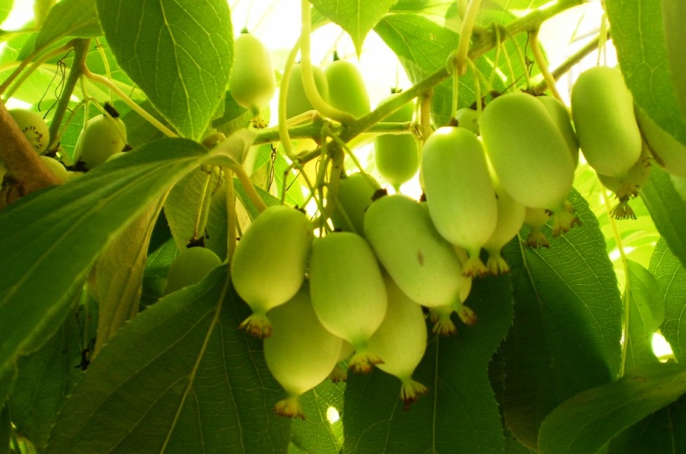 Актинидия коломикта Сентябрьская (жен) - ягода 18г, зелёная, плоды отменного вкуса, с тонким ароматом. Срок созревания во второй половине сентября. Начало плодоношения через 2-3 года после посадки. Урожайность 10-12 кг/куст. Лиана до 20 м, растение зимостойкое.