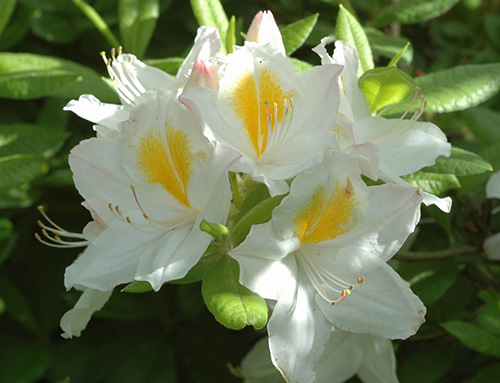 Азалия Persil - очень красивоцветущий кустарник. Куст медленно растущий в молодости, с возрастом асимметричный. Высота растения достигает 1,5 м, диаметр - 1 м. Листья эллиптические, длинные (до6-8 см ), летом – темно-зеленые, осенью – красные. Цветки крупные, до 5 см, белоснежные с контрастным золотым пятном, в соцветиях по 5-10 штук.