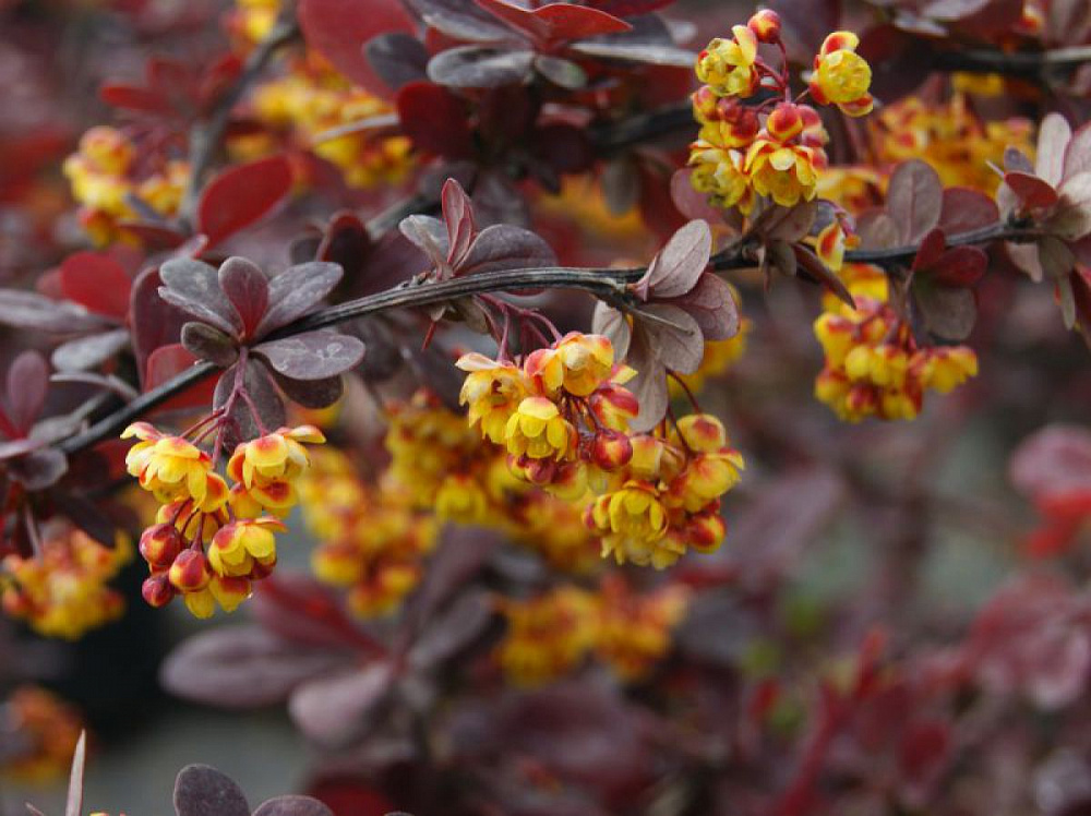 Барбарис оттавский Суперба на штамбе - это штамбовый кустарник. Листья очень эффектные, пурпурно-зелёные с синеватым отливом, осенью – ярко-красные, цветёт в мае, цветки жёлтые с красной отметиной, на длинных цветоножках, ягоды светло-алые, место солнечное или полутень, к почве нетребователен, совершенно неподвержен заболеванию мучнистой росой