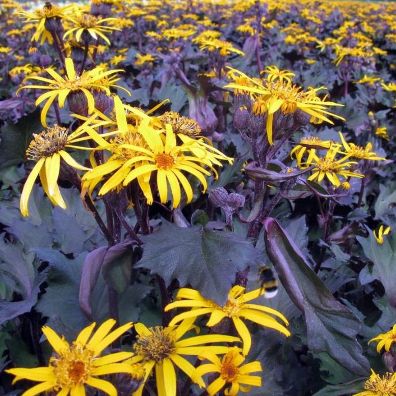 Бузульник зубчатый Осирис Фэнтези(Osiris Fantaisie) относится к сорту с необычным окрасом листьев: темно-зеленый с коричнево-бордово-фиолетовым оттенком. Край листа волнистый зубчатый. Цветки золотисто-желтые в виде крупной ромашки, на красных цветоносах. Цветение продолжительное и длится с июля до морозов. Растет Бузульник зубчатый Осирис Фэнтези быстро. Растение неприхотливо, но в густой тени теряет свой декоративный вид. Также оно любит влажные места. В высоту многолетник достигает до 70 см.