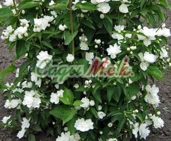 Цветение начинается, как и у обычного жасмина - в начале лета. Куст покрывается обычными, белыми, но очень ароматными цветами.