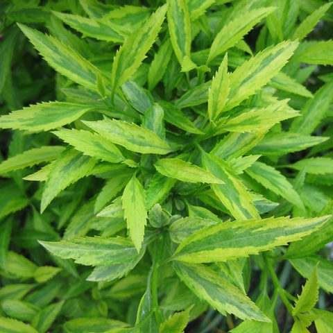 Форзиция темно-зеленая Цитрус Свизл - небольшое растение способное своей необычностью украсить любой сад. Форзиция начинает цвести уже в конце апреля или начале мая. Золотистые колокольчики растения видны издалека. Резные зеленые листья украшены бледно-желтой каймой, осенью — красно-бордовые. Форзицию лучше высаживать на освещенное место, защищенное от ветров