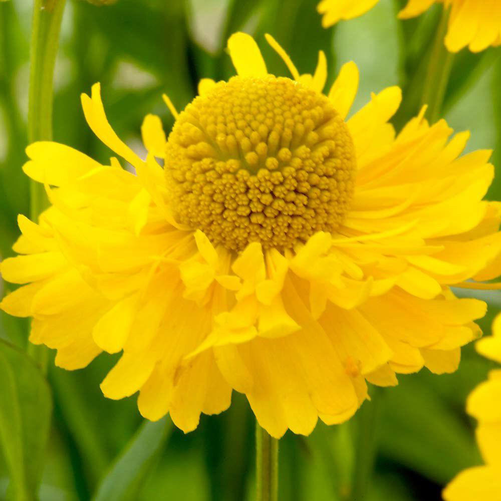 Компактный кустик с ярко-желтыми махровыми цветками. Первый махровый сорт гелениума. Формирует красивый компактный куст с прочными стеблями, высота до 70 см. Цветки махровые, канареечно-желтые с зеленоватой серединкой, расположены на прочных цветоносах. Цветет обильно и продолжительно с июня по сентябрь. Зона зимостойкости: 5 (-29 °С). Гелениумы предпочитают солнечные места, но хорошо растут и в тени. Лучшие почвы для гелениума - плодородные, хорошо окультуренные, влагообеспеченные, нейтральные.