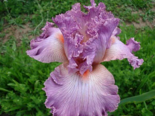 Ирис Social Graces - поражает сильной гофрировкой и кружевами по краям лепестков. Смесь розово-сиреневого и орхидно-розового. Основание фолов желтовато-кремовое с выраженной текстурой с красной бородкой и выразительными, более темными прожилками. Высота цветоноса 96 см. Срок цветения поздний.