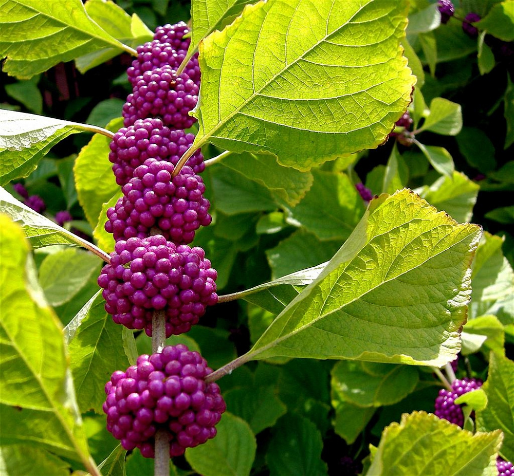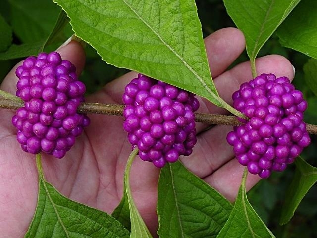 Плоды: Красно-фиолетовые глянцевые ягоды диаметром до 4 мм появляются в большом количестве, очень декоративны.
