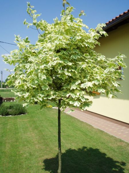 Саженцы клена остролистного Drummondii – прекрасный способ подарить тень участку территории. Этот эффектный сорт, обладающий густой кроной диаметром от 7 до 9 м в форме широкой пирамиды, вырастает до 15 м.