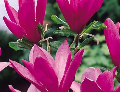 Магнолия Susan - плотный кустарник, вначале конусообразный, с возрастом округлый. Высота растения - до 3 м. Листья тёмно-зелёные, обратнояйцевидные или овальные, длинной 6-10 см. Цветы узко чашечные, колокольчиковые, диаметром до 15 см, пурпурные, внутри и на концах светлее, резко ароматные. Цветёт в конце апреля. Распускаются раньше или одновременно с листьями. В цветке всего 6 лепестковидных листочков околоцветника, длинной 10-15 см. Потрясающее зрелище, приковывающее всех гостей, соседей и прохожих. Лепестки часто скручённые. Цветёт сорт обильно и долго в конце мая - начале июня.