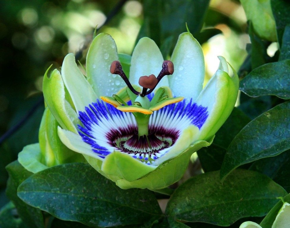 Маракуйя Pandora - вечнозеленая, многолетняя лиана австралийского происхождения. Листья 3-лопастные, темно-зеленые, слегка зубчастые, со светло-зелеными жилками. Цветы белые, темно-фиолетовые ближе к центру. Плоды темные, сине-красные, почти черные, продолговато-округлой формы, съедобные.