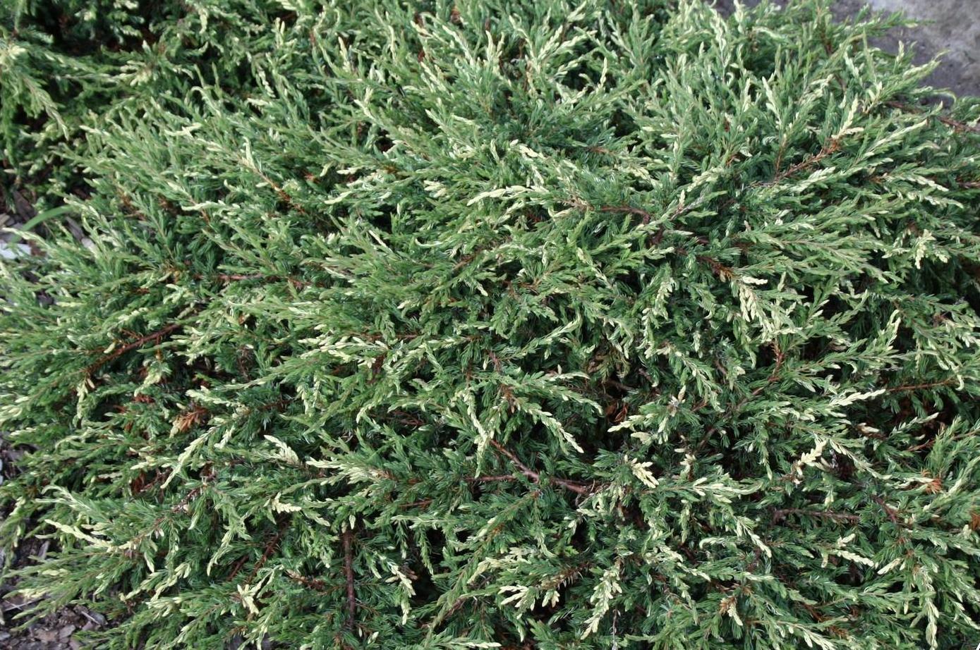 Можжевельник Spotty Spreader - оригинальный медленно растущий стелющийся хвойный кустарник высотой до 0,2м и диаметром кроны до 2м. Хвоя темно-зеленого цвета, а на кончиках побегов светлая, кремовая, особенно яркая при произрастании на солнце, мягкая, короткая.
