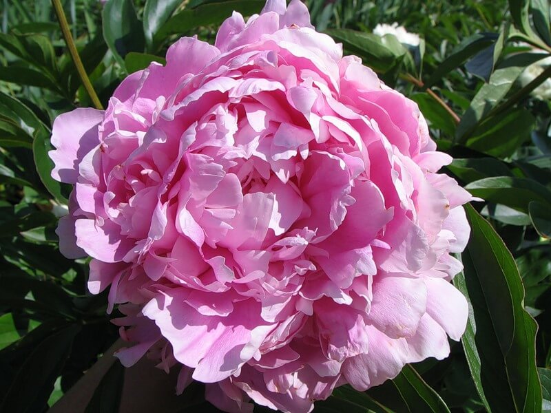 Травянистый пион Clemenceau махровый, шаровидный. Характеризуется он средним сроком цветения. Лепестки собраны в яркие розово-красные крупные шары, которые смотрятся роскошно на фоне широких зеленых листьев. Высота 90 см. Размер цветка 20 см.