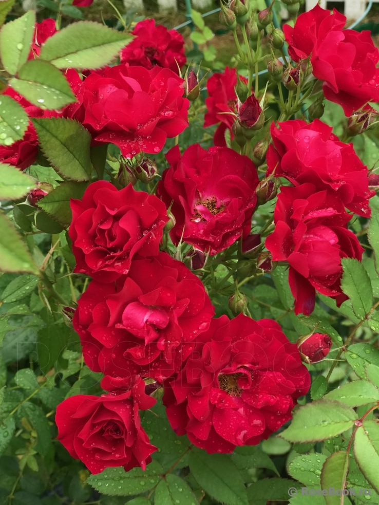 Роза Adelaide Hoodles - куст быстрорастущий, с темно-зеленой, блестящей листвой. Цветки красные или малиновые, полумахровые, в больших кистях (5-15 цветков, осенью еще больше), на длинных ветвях, гнущихся к земле под их тяжестью. Первая волна цветения очень обильная, затем появляются эпизодические цветки до второй волны цветения, которая не столь обильная. Сорт устойчив к заболеваниям.