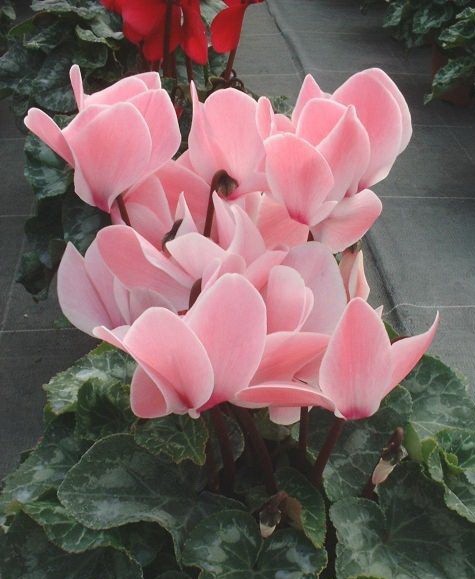 Цикламен персидский Аврора - Многолетнее клубневое растение семейства Первоцветные. Цветки очень ароматные, цветонос достигает длины 15 -20 см. Цветет с поздней осени до конца апреля, летом находится в состоянии покоя. Оптимальный срок посева конец августа. Семена перед посевом замачивают на сутки в теплой воде, а затем высевают в горшки с листовой и торфяной землей(1:1).Сверху семена присыпают слоем земли 0,5-1см, обильно поливают, накрывают темной пленкой. При t 20°C всходы появляются через 30-40 дней. После появления всходов притенение снимают, температуру снижают до 15-17 °C. Когда образуются маленькие клубеньки с двумя листочками, пикируют в ящики со смесью из листовой, торфяной земли и песка (2:1:0,5). При пересадках у молодых растений верх клубенька должен находиться у самой поверхности почвы (не глубже 0,5 см). У взрослых растений верх клубня обычно открыт. В период покоя сбрасывает листья. Выращивают на северных и восточных окнах, на южном притеняют от прямых солнечных лучей. Зимой содержат на светлом месте при температуре не выше 8 - 10 градусов. Летом необходимо выполнять приемы по поддержке роста растений: поливать исключительно через поддон, опрыскивать водой комнатной температуры, удобрять. Удобряют не более 2-3 раз за лето, преимущественно азотно-калийными удобрениями.