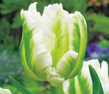 Тюльпан Madonna - это нежность и красота. Светлые белоснежные прочные лепестки рассечены зелёными штрихами, исходящими из центральной части лепестка. Сначала цветок смотрится исключительно зелёным с несколькими белыми акцентами, однако по мере развития тюльпан стает белым. Высота тюльпана – 40-50 см, диаметр цветка – 12-15 см. Сорт цветет в мае.
