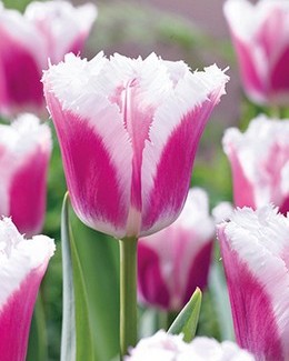 Тюльпан Siesta - нежно-сиреневый цветок с белой бахромой. Очень декоративный и нарядный, он украсит любой сад, клумбу и букет. Форма цветка - чашевидная. Цветет в мае. Цветки хорошо держат форму, транспортабельны. Высота растения - до 50 см. Хорошо растет на ярко освещенных местах с легкими грунтами. Подходит для выращивания в открытом грунте, контейнерах и для срезки.