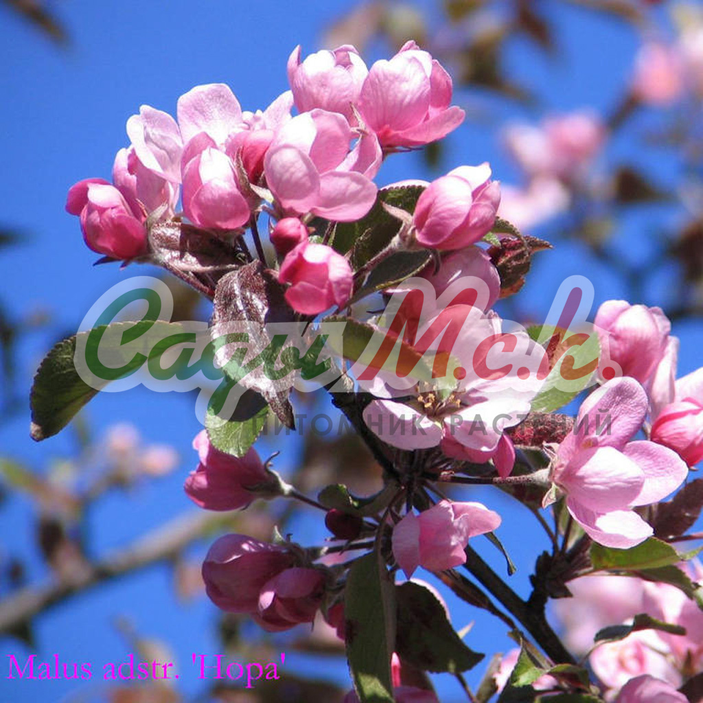 Яблоня Хопа отличается красивой, широкой кроной, темно-зелеными листьями, пурпурно-розовыми с сиреневым оттенком цветками и красно-оранжевыми шаровидными плодами. Высокий многоствольный кустарник или небольшое дерево высотой около 6 метров и диаметром кроны до 4 метров. Крона ажурная с крепкими сильными восходящими боковыми ветвями. Листья яйцевидные темно-зеленые, блестящие, крепкие, при распускании имеют бронзовый оттенок. Цветки сиреневато-пурпурные или темно-сиреневые, крупные, простые. Цветет в мае. Плоды шаровидные, красные, иногда с оранжевым бочком. Зимостойкость высокая. Светолюбива.
