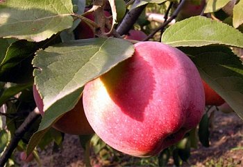 Яблоня Виктория - позднеосенний, дерево среднерослое, медленнорастущее. Крона узкопирамидальная, средней густоты. Колонновидного типа. Побеги расположены компактно, концы направлены вверх, округлые, коричневые, прямые, опушенные. Листья средние, продолговатые, короткозаостренные, зеленые. Плоды крупные, массой 160 г, округло-цилиндрические, одномерные. Окраска светло-желтая, с темно-красным размыто-плосатым румянцем по всей части плода. Подкожные точек мало, мелкие, зеленовато-серые, хорошо заметные. Мякоть белая, средней плотности, нежная, мелкозернистая, очень сочная. Вкус кисловато-сладкий. Устойчивость к засухе средняя. В плодоношение вступает на 5-й год.